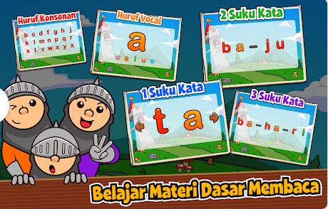 Belajar membaca dengan tampilan menarik dan tampilan animasi.