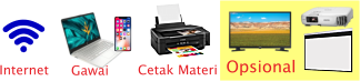 Perlengkapan sesuai materi belajar (misalkan alat musik untuk materi musik, kamera untuk fotografi dst).