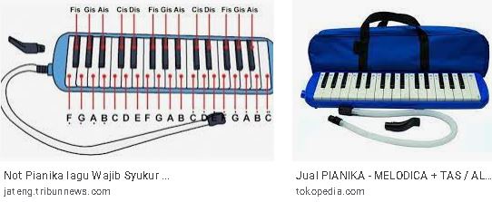 Klik Pianika di Wikipedia, dimana tertera penjelasan singkat. Pianika yang disebut juga dengan Melodika memiliki tuts seperti alat musik Piano dan Keyboard namun untuk membunyikannya perlu ditiup dan menghasilkan suara yang khas Pianika. Pianika ini sering dipakai sebagai alat dalam pelajaran Seni Musik di Taman Kanak-Kanak dan Sekolah Dasar.